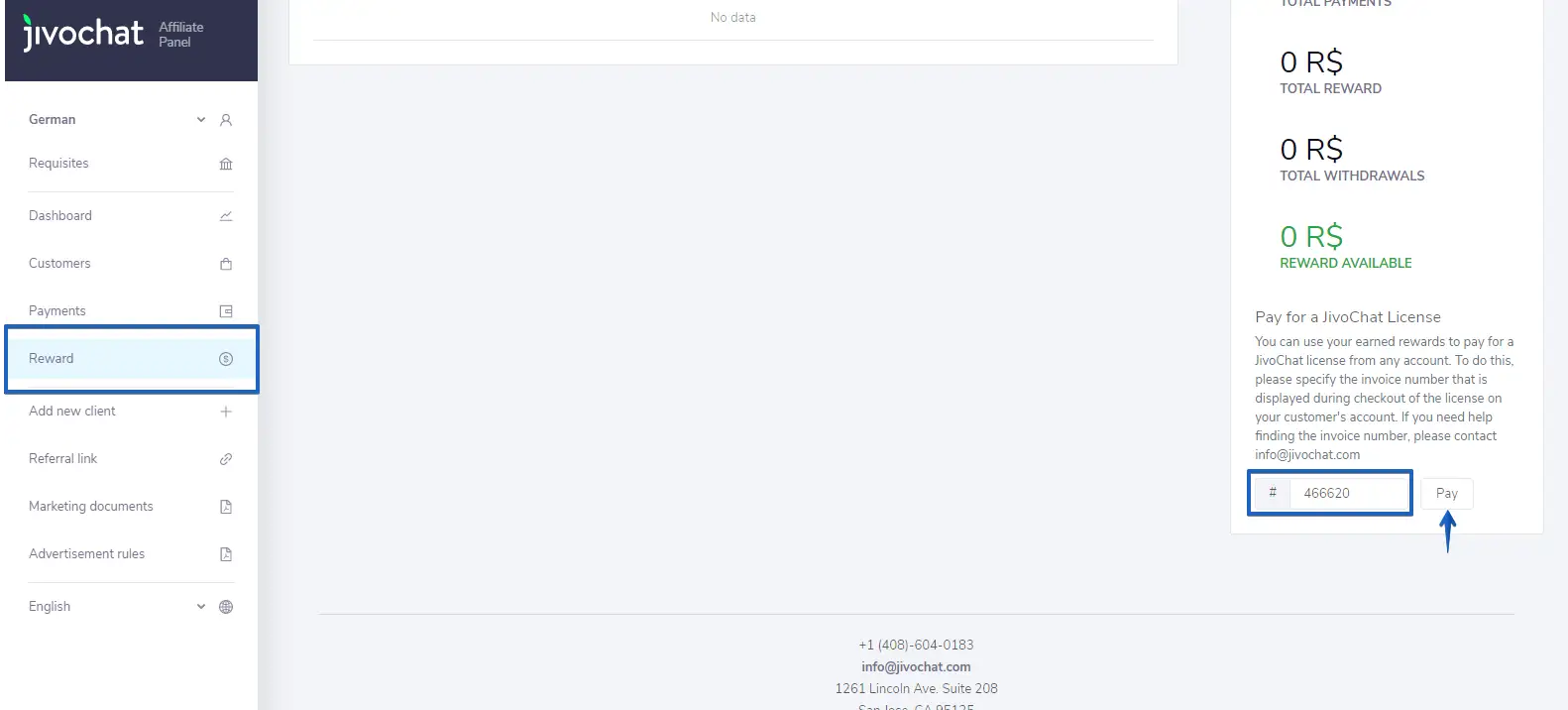 You can go to the menu: "Payments" or "Reward". You can find the option in any of both.