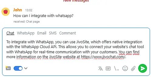 Autopilot will automatically prepare a response for the customer's next message, as in the example below. The operator will be able to check the response before sending it:
