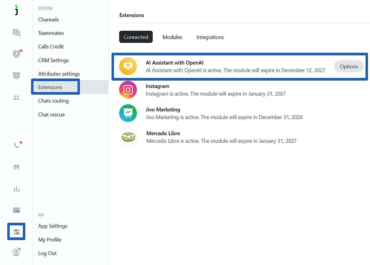 To enable AI Assistant in the JivoChat app, follow these steps: