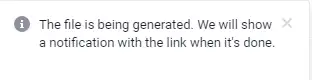 3.You'll receive a notification saying that the file is being generated. Wait a few minutes until the file generation is completed. You can continue working in chats and calls while the file is being generated.