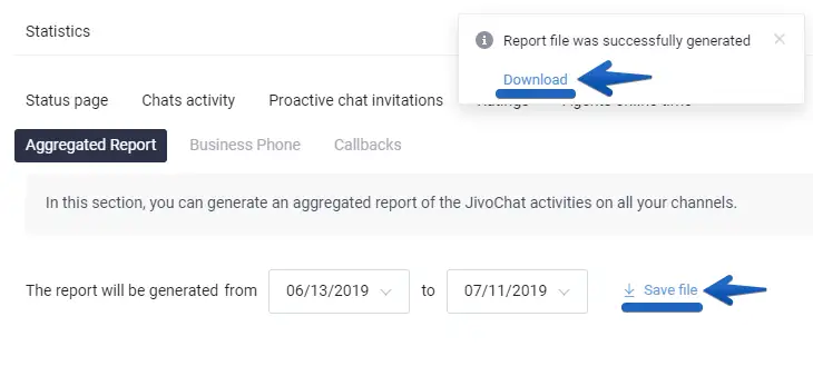 Recommendations: generate the report with a maximum of 90 days of statistical data from your team's work in the JivoChat app to avoid any overload when downloading it. The more data in the report, the longer it will take to download.