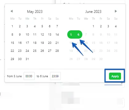 Then select the previous day's date (5 for example) and the current day's (6 for example) -> Click "Apply"
