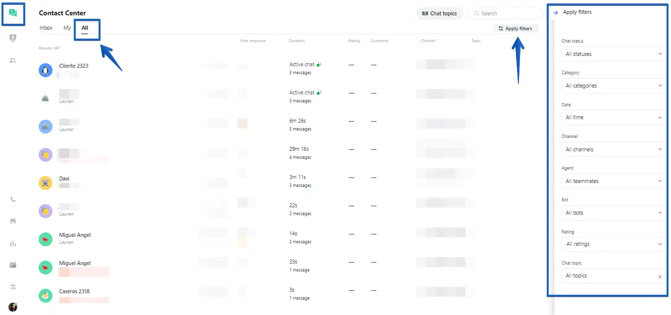 - Conversation date: you can filter according to the period you want to analyze.