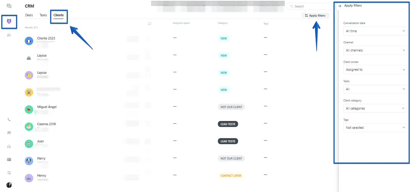 Step 1: Click on "CRM" -> "Clients" -> "Apply filters" section