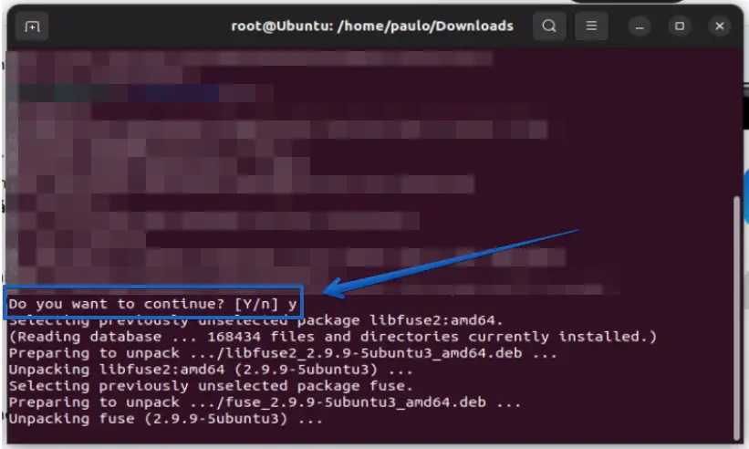 A message "Do you want to continue?" will appear, write "Y" and click on the "Enter" key to continue