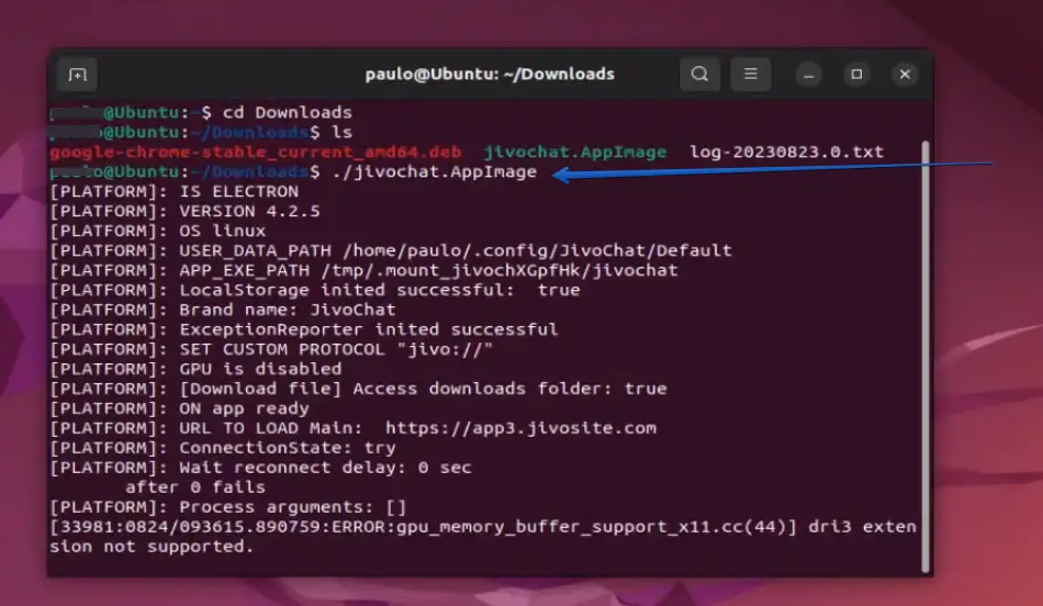 - Now you have to give the newly downloaded JivoChat file the necessary permissions with the command: chmod u+x jivosite.AppImage