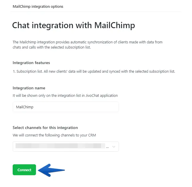 The integration will let you automatically transfer leads generated in JivoChat directly to a list of contacts in your MailChimp account.