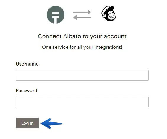 Insert your MailChimp credentials and click to "Log In".