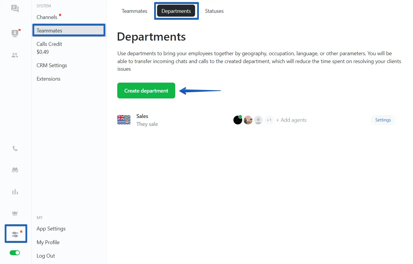 If you have not added departments yet, you need to create them. Department settings are located in Management > Employees > Departments