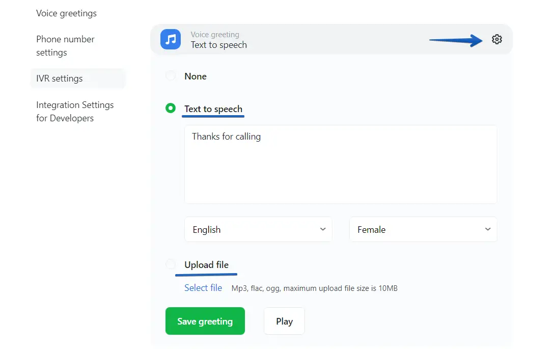 To do this, go to "Management" > "Channels" > "Setting (next to the channel of your number), then open the section "IVR settings".