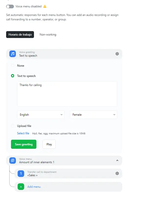 After the departments are created, you can proceed directly to setting up the voice menu.
