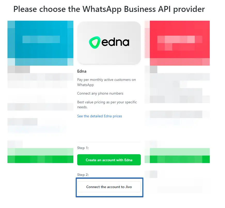 Once the account has been registered with Edna after step 2, you can connect it to JivoChat.